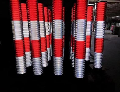 5. 反射器可以是反光片或反光膜,反光片用铆钉紧紧固定在柱体上,反光膜紧紧粘附在柱体上。